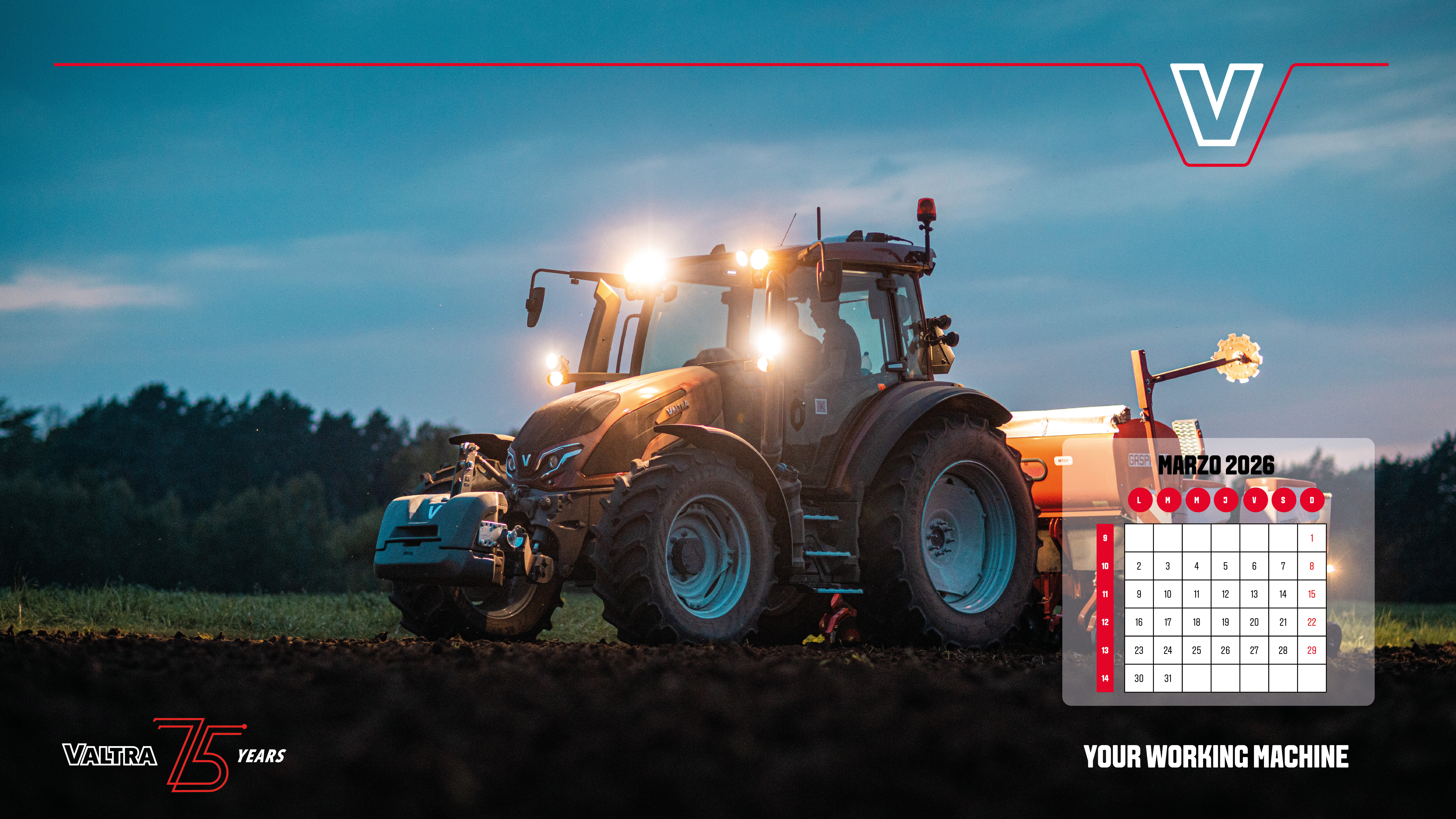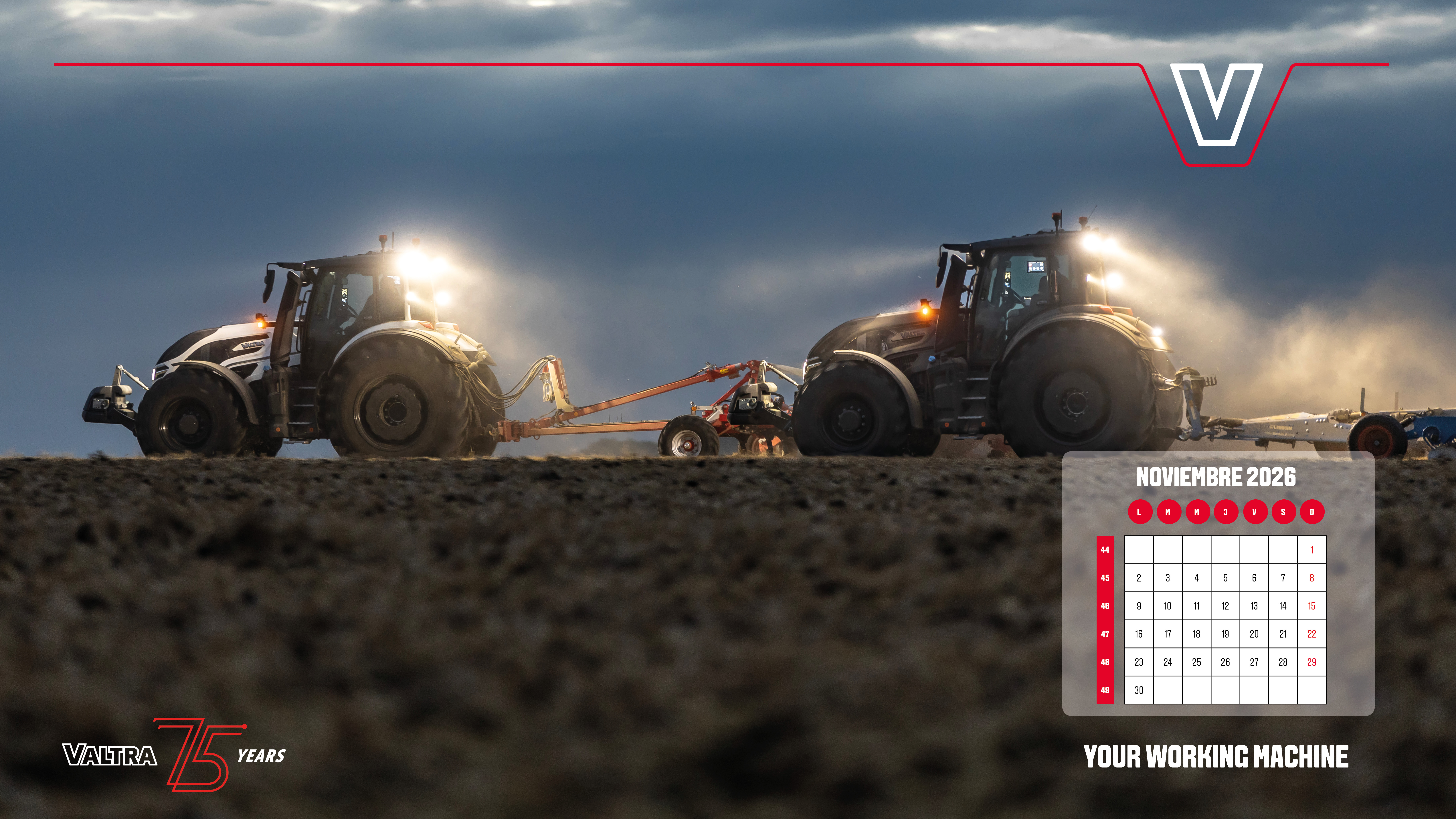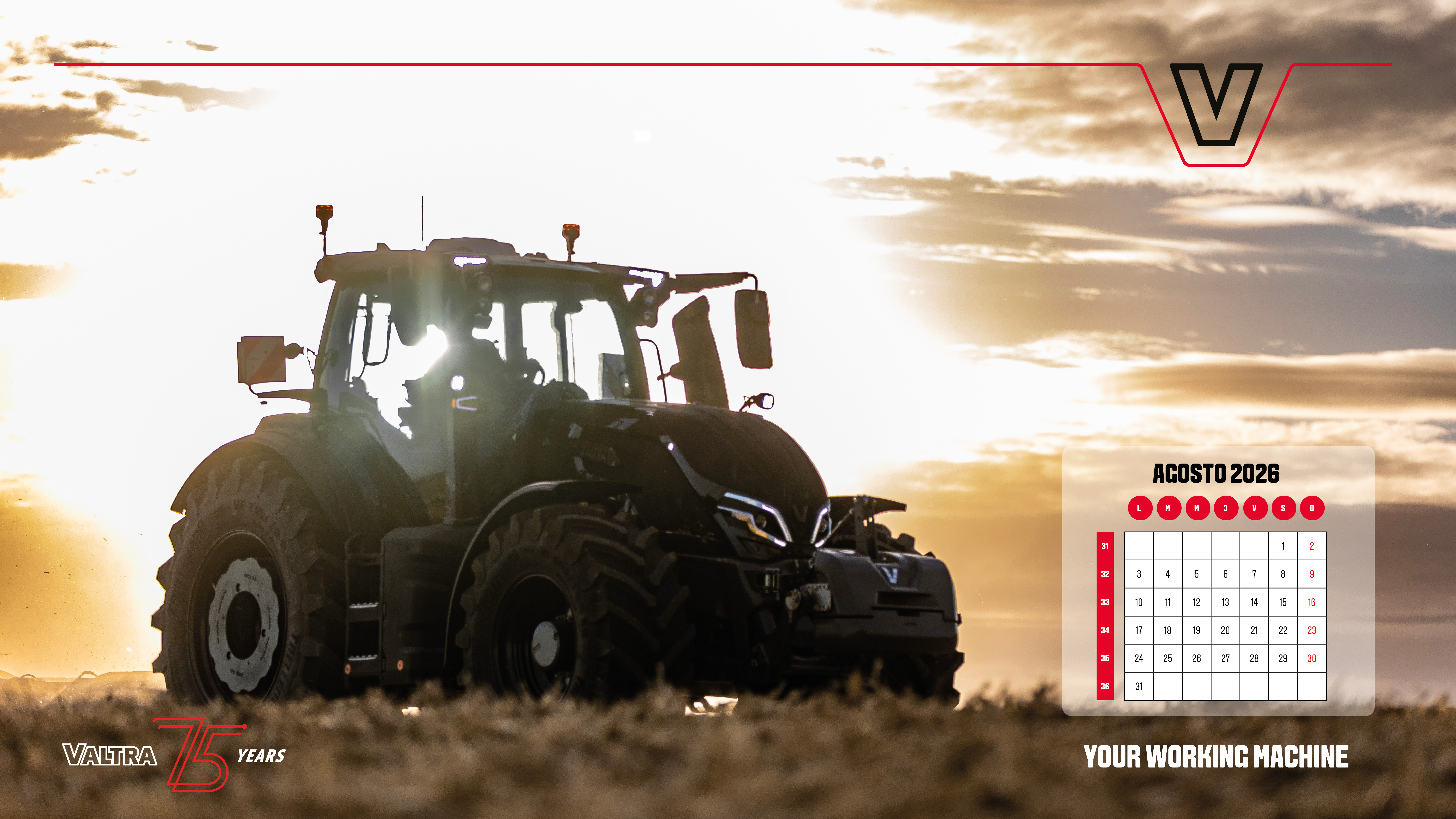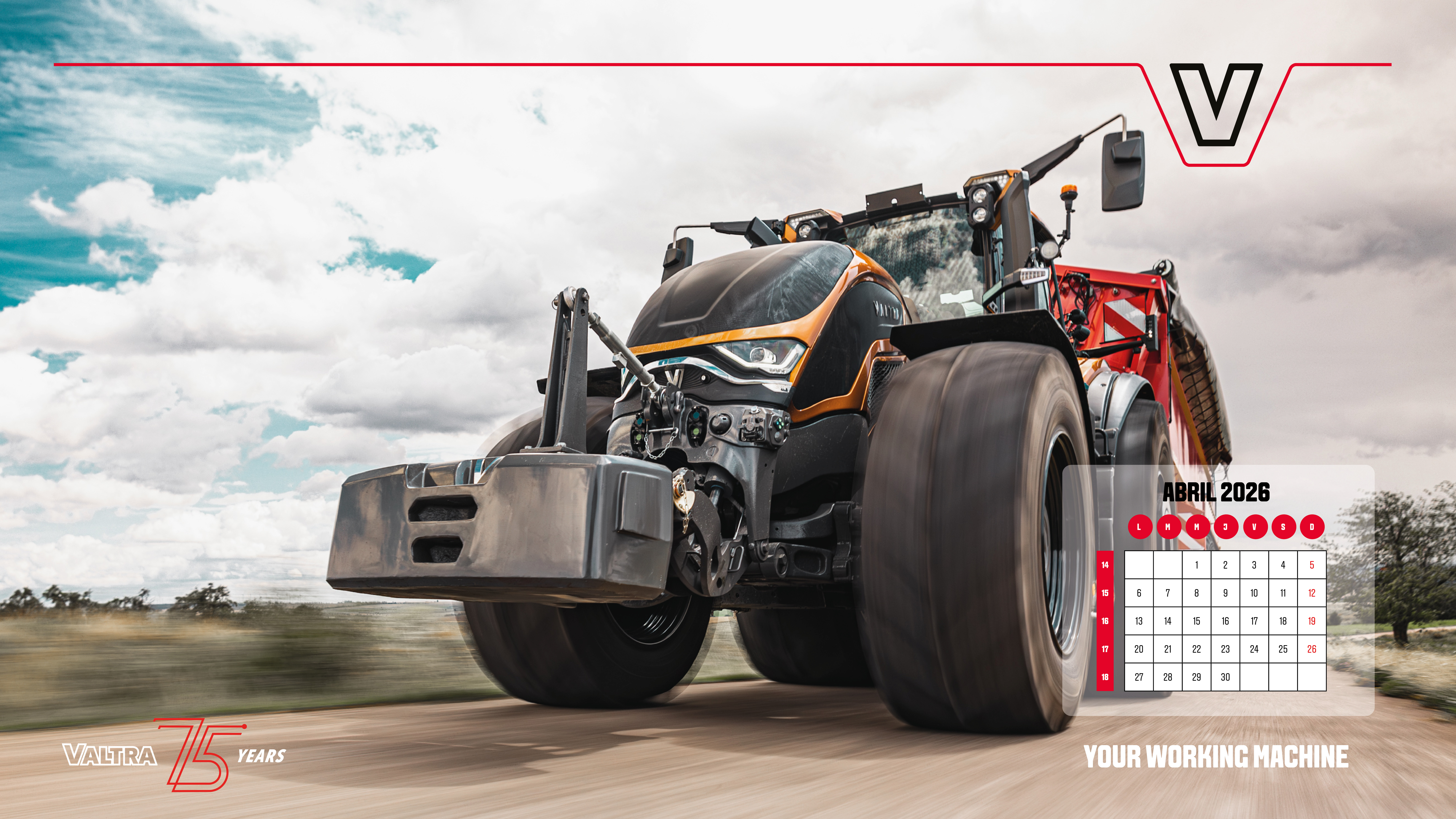 Descarga nuestras hojas del calendario y lleva Valtra a tu escritorio, a tu casa y a tu oficina. Haz clic en la imagen y "guardar como". También puedes descargar todas las hojas del calendario desde el enlace de descarga.