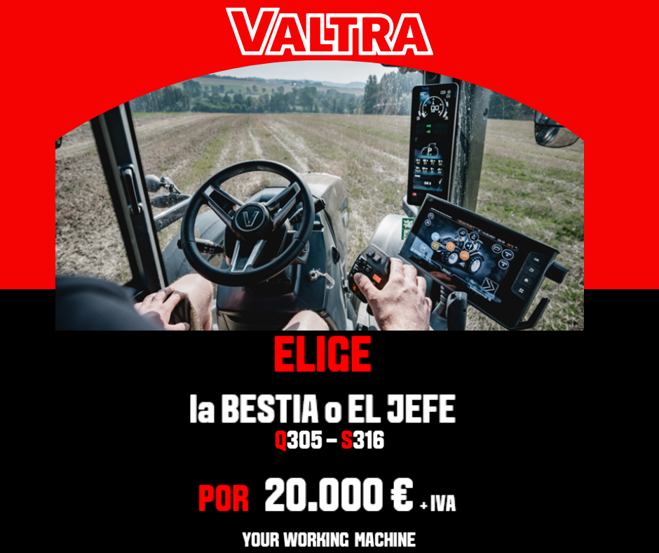 *Operación Financiada por De Lage Landen International BV Sucursal en España bajo la marca AGCO Finance, CIF W0031602F. Financiación desde 3.000 €. Condiciones sujetas a la aprobación por parte de la entidad financiera. Verifique los límites máximos para financiar por modelo y duración del programa con tu concesionario Valtra.