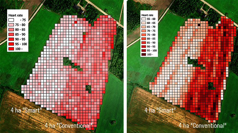 La frecuencia cardíaca media bajó a 68 bpm con smart farming, frente a 77 bpm sin ella.